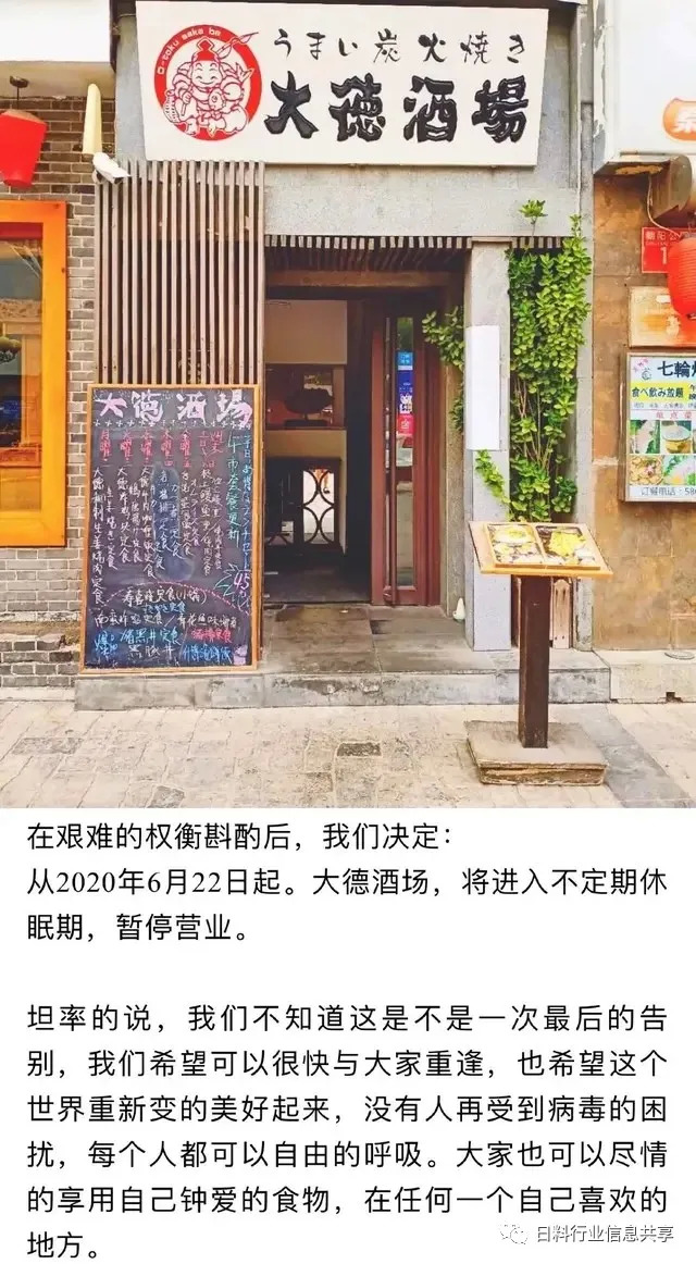 大德在北京算是比较有名的一家店,6月22日朋友圈看到大德酒场的休业通知,昨天是他们最后一天营业,上周新发地新闻出来之后,北京日料店基本全员歇业。